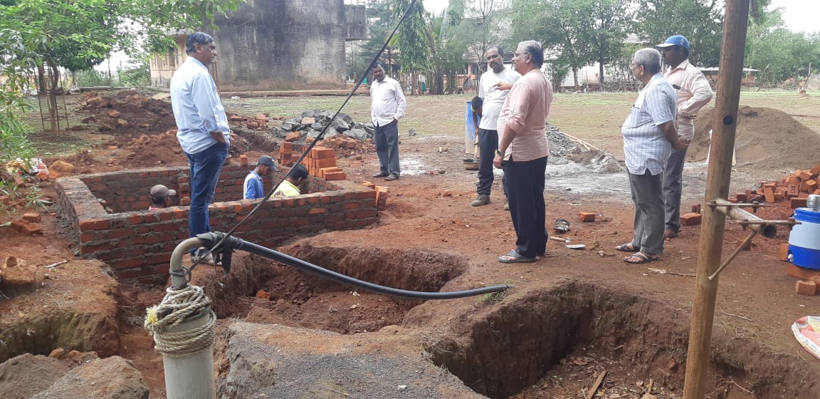 Dr Mundlye conducted a detailed survey and recommended solutions for water conservation in the school premises. One of the recommendations was artificial recharging technique to replenish the existing 2 borewells by rooftop rainwater harvesting system. Other recommendation was to harvest rain water by constructing underground bund and increase the supply of water well and supporting natural aquifers.