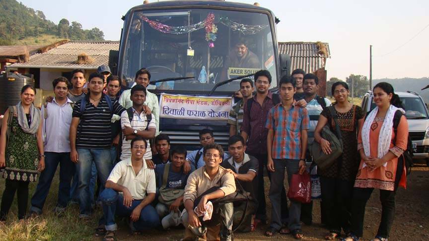 Vihigaon, Kasara: Around 15 volunteers from Vivekanand Seva Mandal, Dombivali visited Vihigaon for Diwali Sneha Bhoj activity. We started early morning at 6.30am from Dombivali and reached vihigaon at 9.00am. We had planned to conduct three activities simultaneously, Kandil (customary festive lamp) making for school children, presentation and discussion on De-addiction efforts with the youth of Vihigaon and Saree distribution among the Women Self Help Group members as a Bhaubij gift.